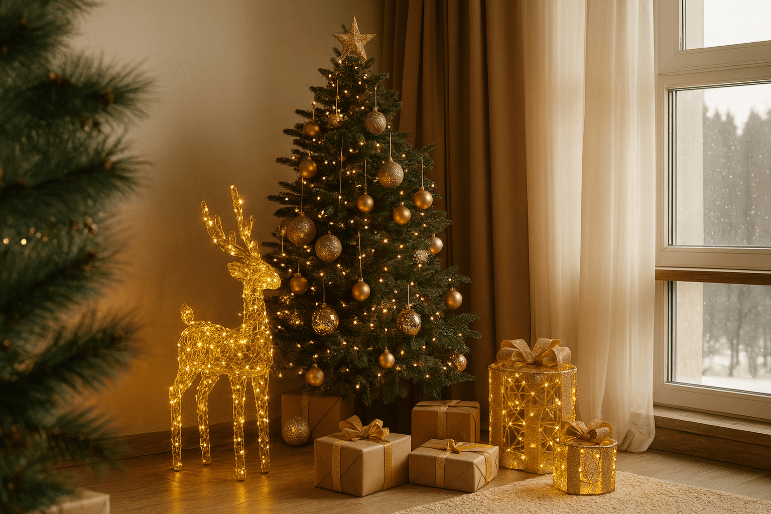 Серия праздничных декораций, вдохновлённых утончённой эстетикой Европы. Изысканные силуэты, изящные линии и тёплое золотое свечение создают атмосферу уюта и торжества, будто сошедшую с витрин рождественских ярмарок Вены или Праги.