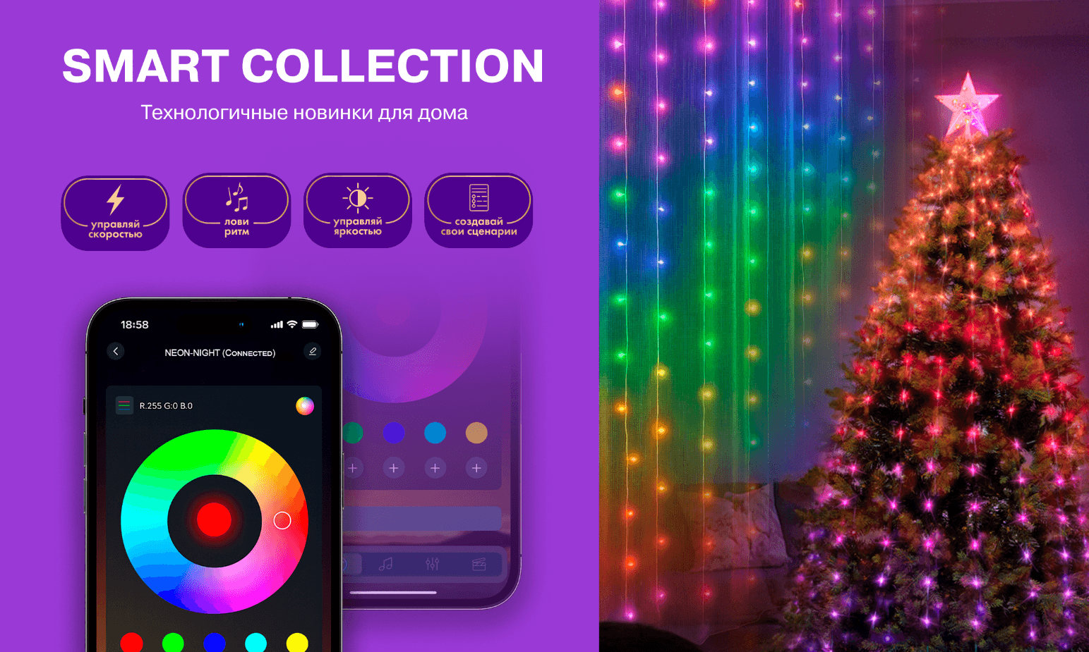 Гирлянды, гибкий неон и занавесы из росы с умным управлением — это новое поколение декоративного освещения. С помощью мобильного приложения можно регулировать яркость, выбирать цвет, задавать эффекты и синхронизировать свет с музыкой. Каждое устройство поддерживает работу в единой системе «умного дома», создавая комфортную и динамичную атмосферу без лишних усилий.